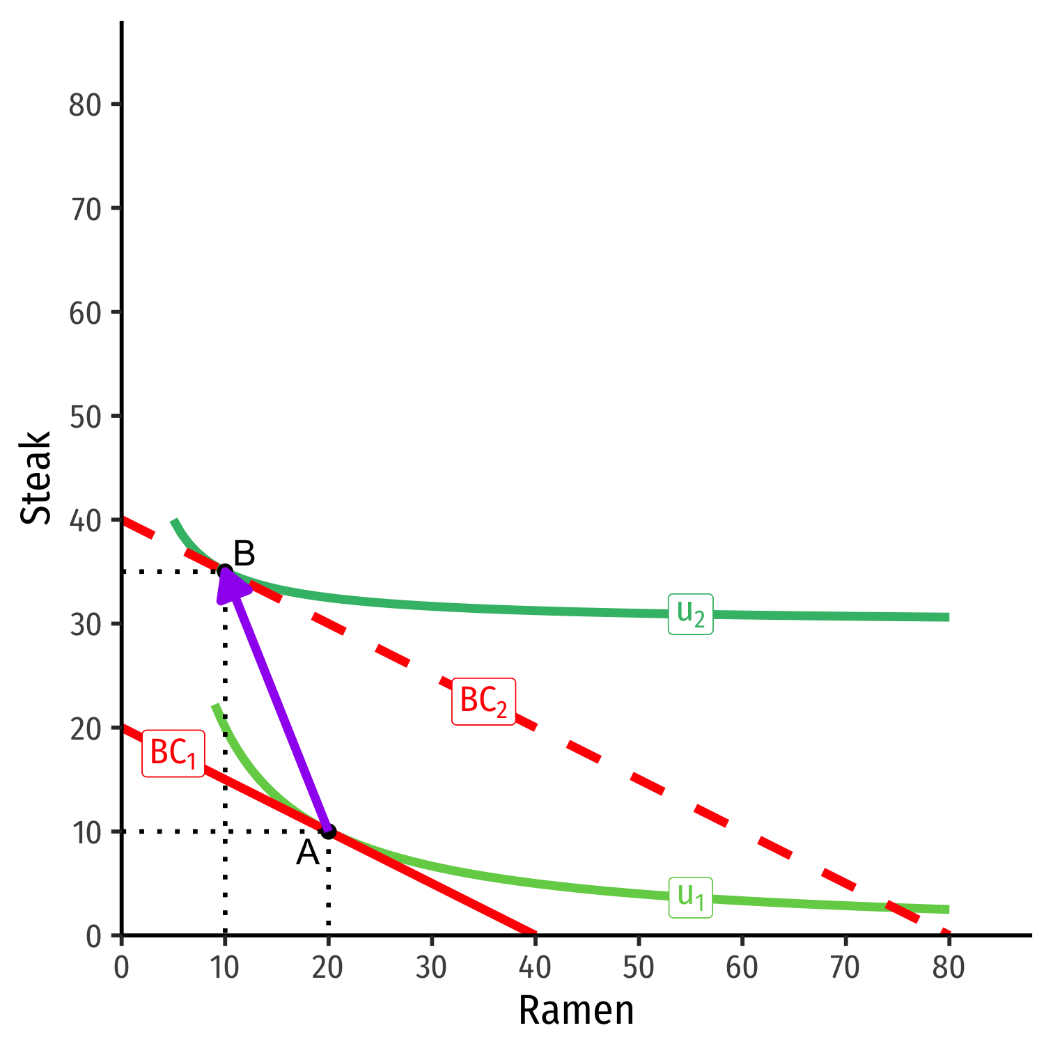 We now can explore the dynamics of how individuals optimally respond to changes in their constraints