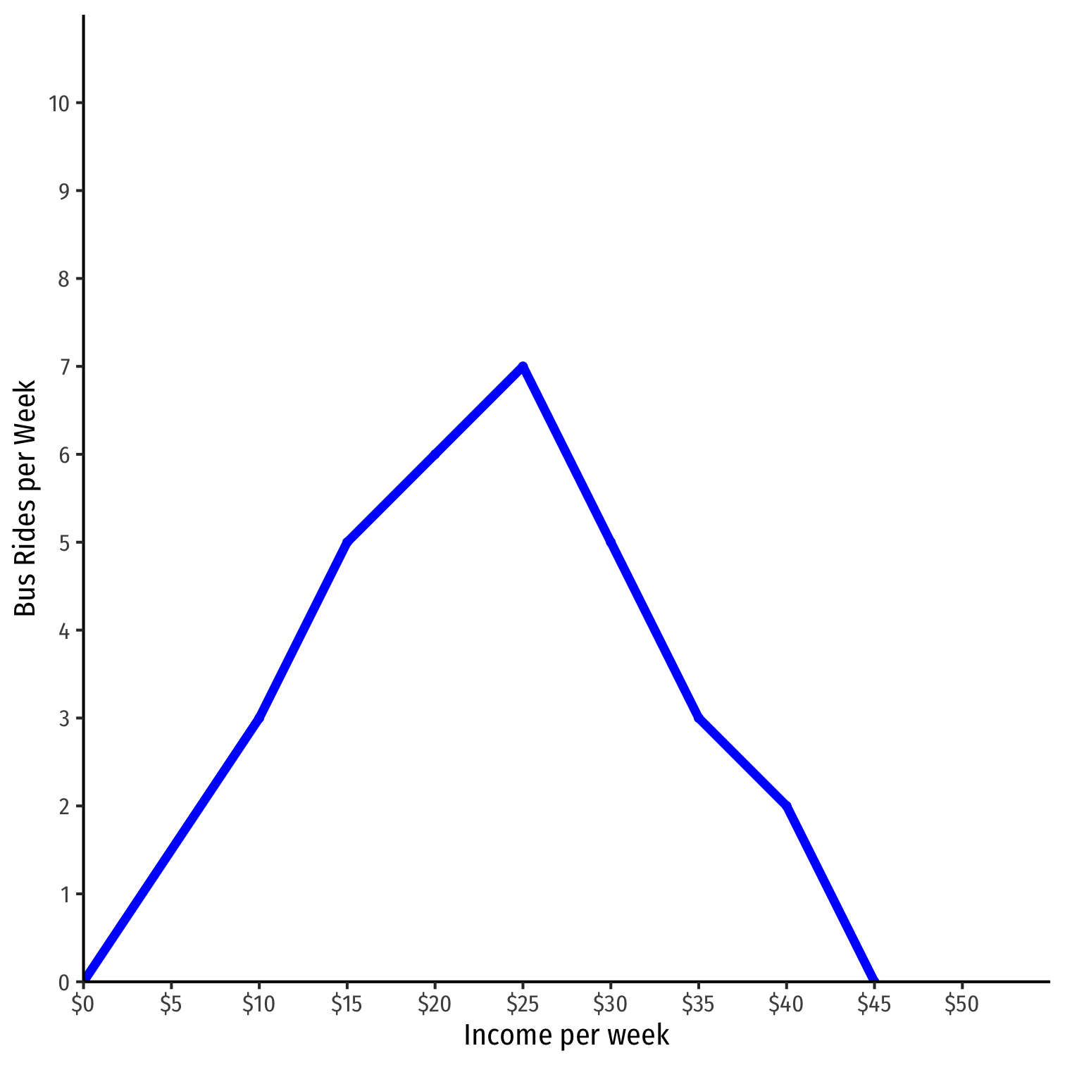 Example: You can travel into the city every week on Lyft rides and Uber rides. When Lyft is $20/ride, you ride 10 Uber rides. When Lyft raises prices to $25/ride, you ride 15 Uber rides.