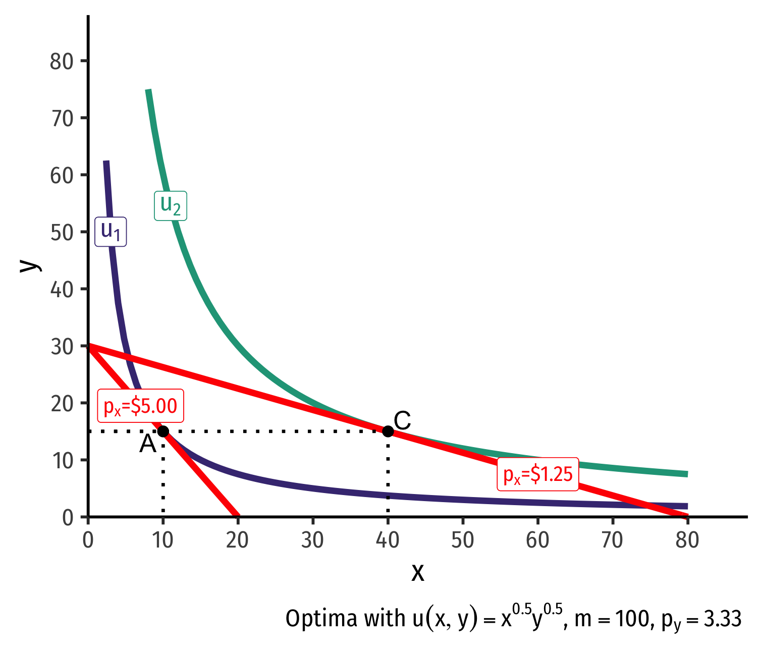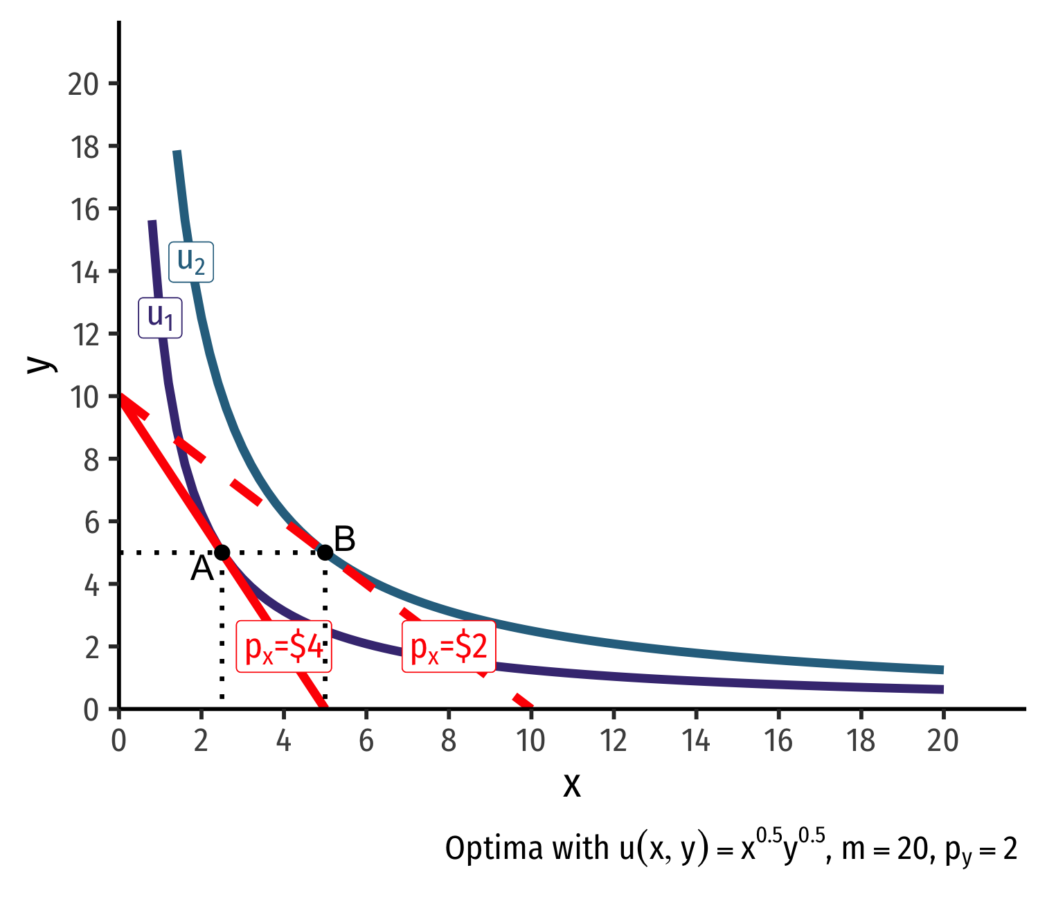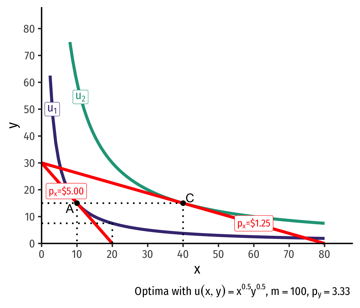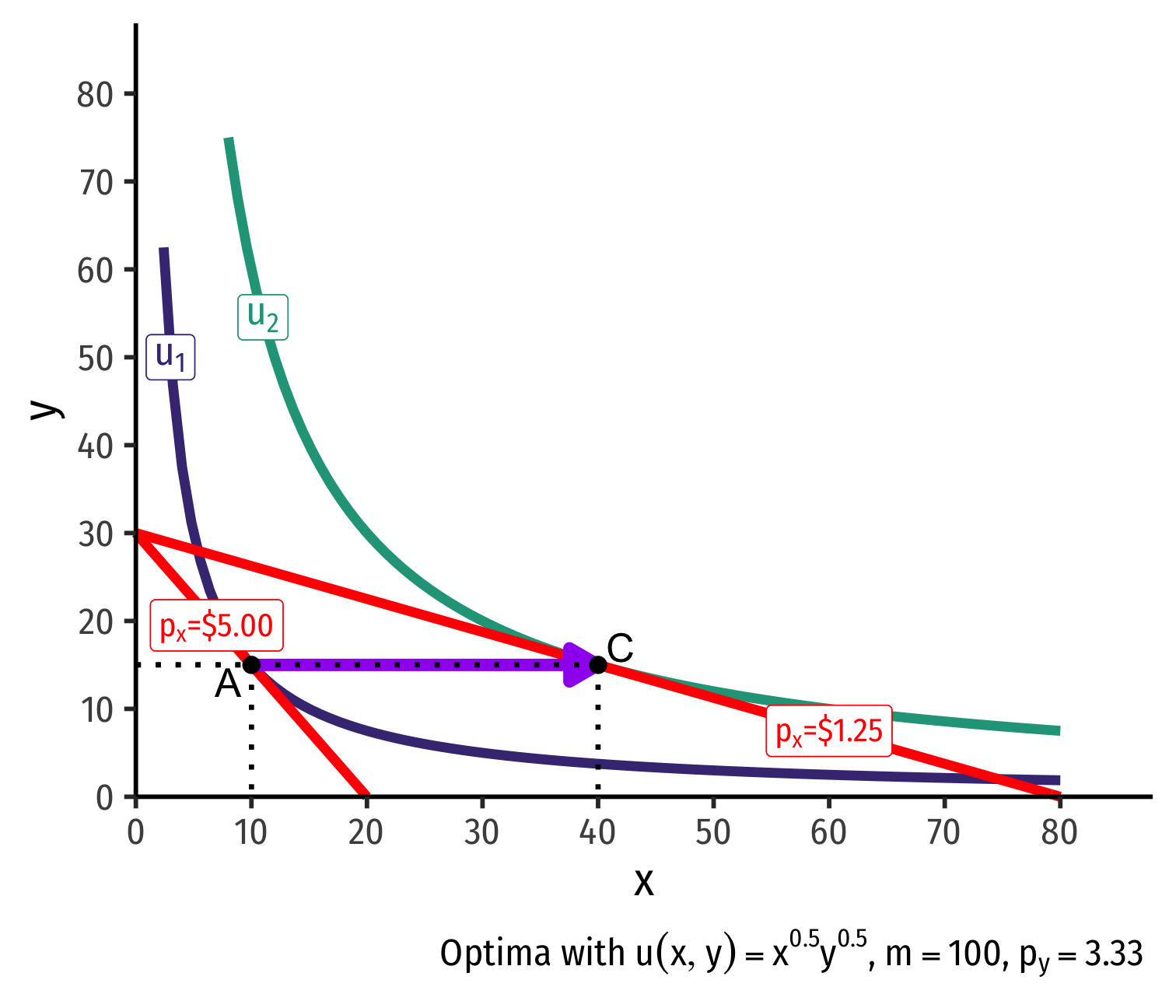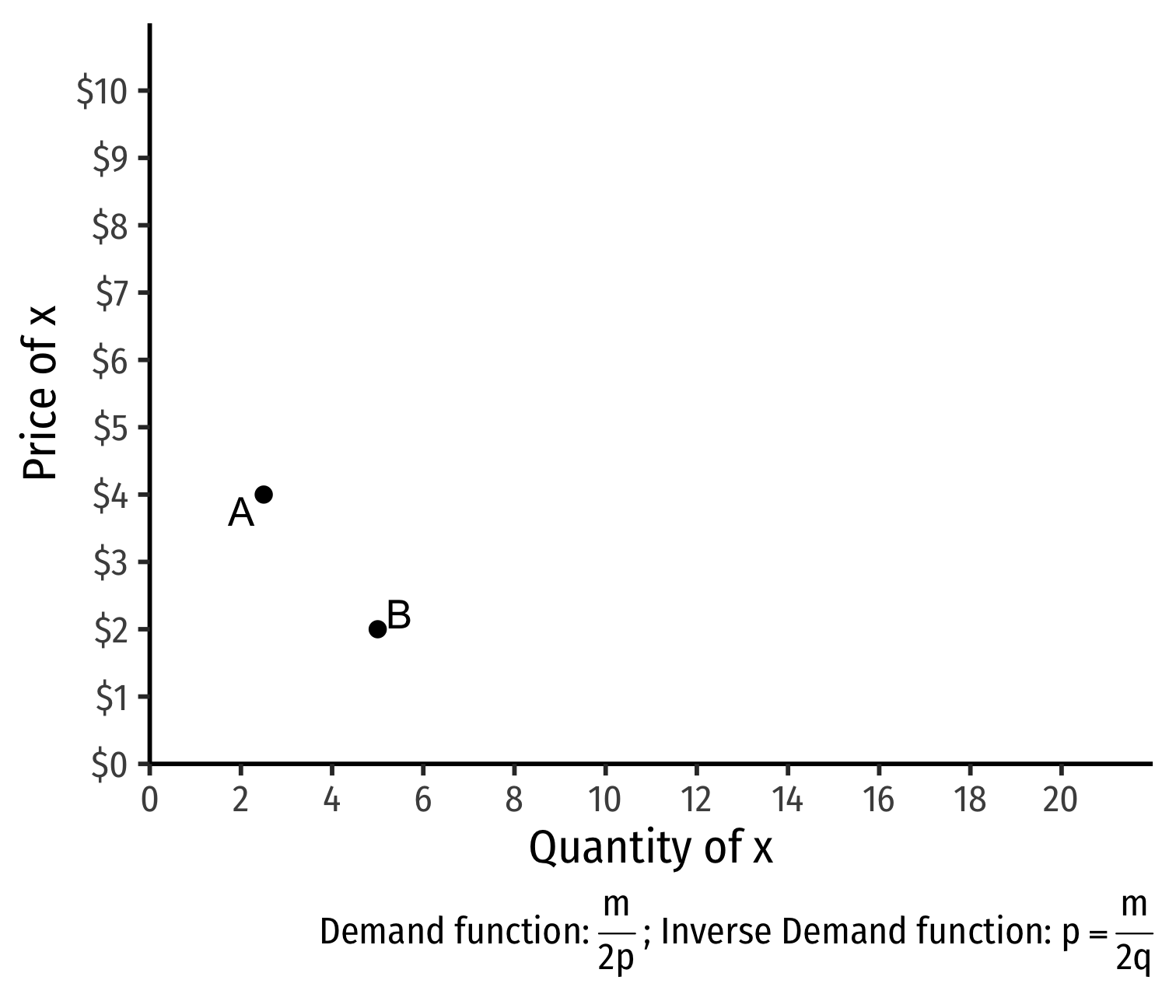 Suppose the price of x falls to $5. Your now consume 20 units of x.
