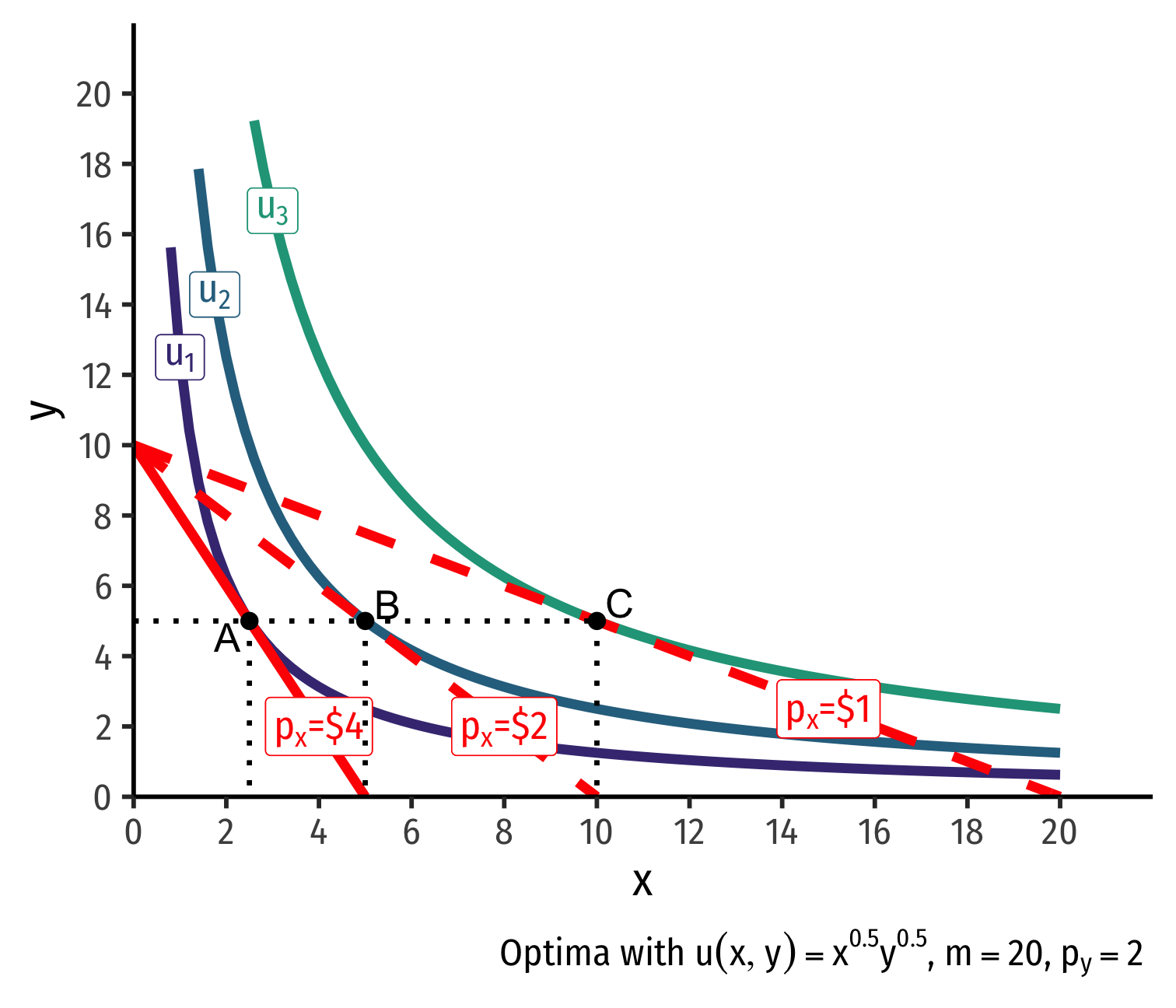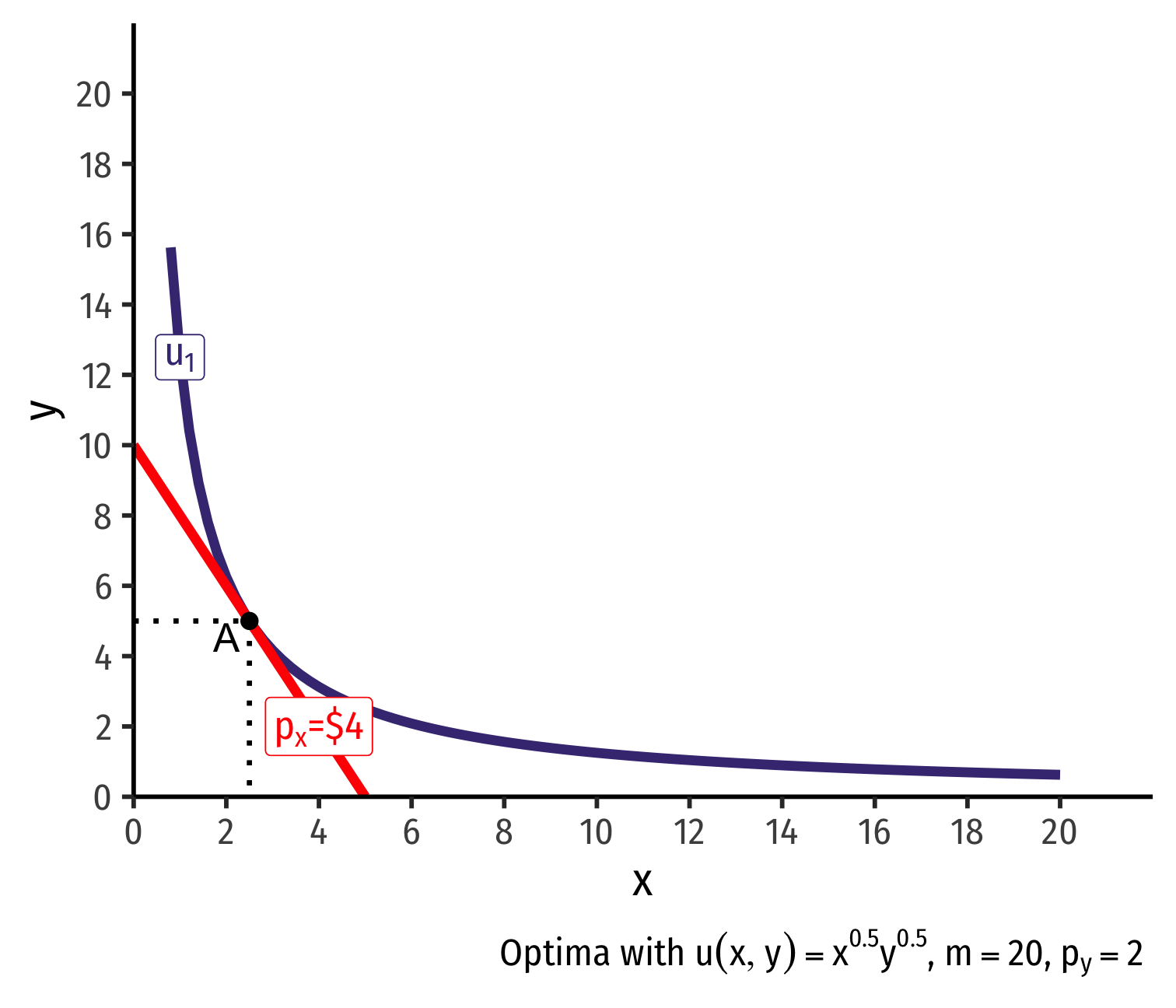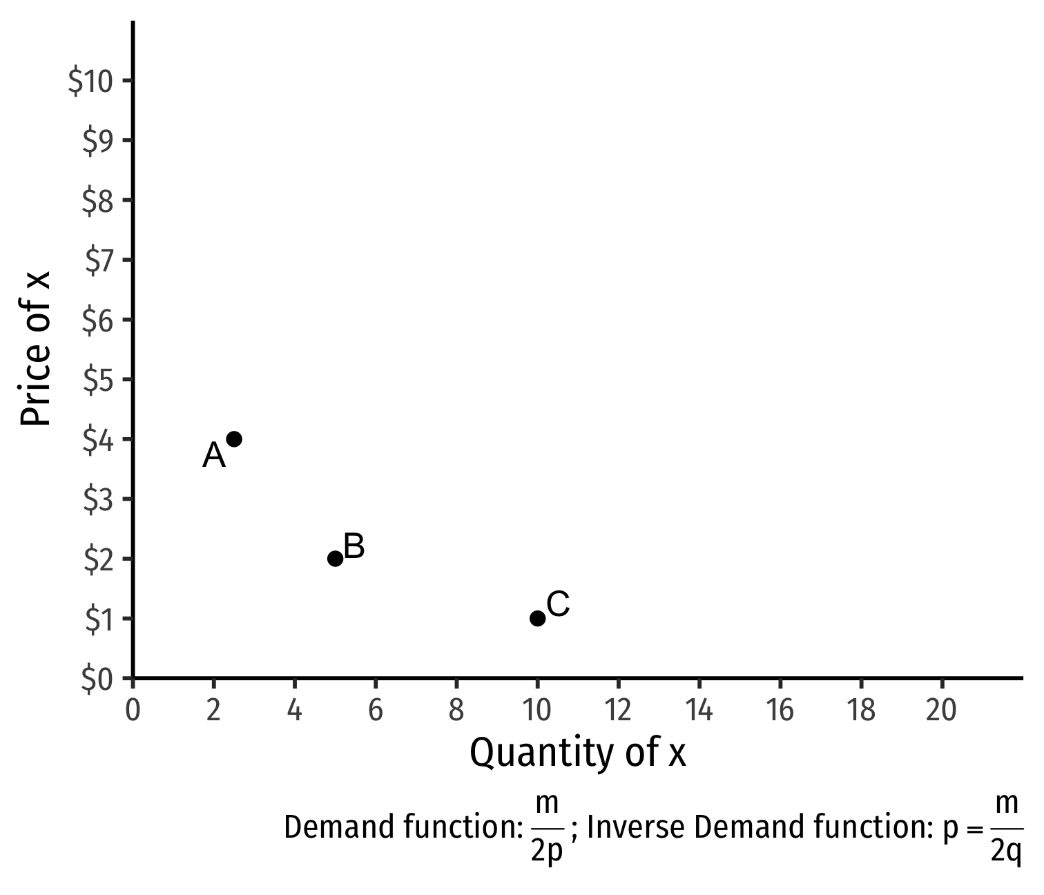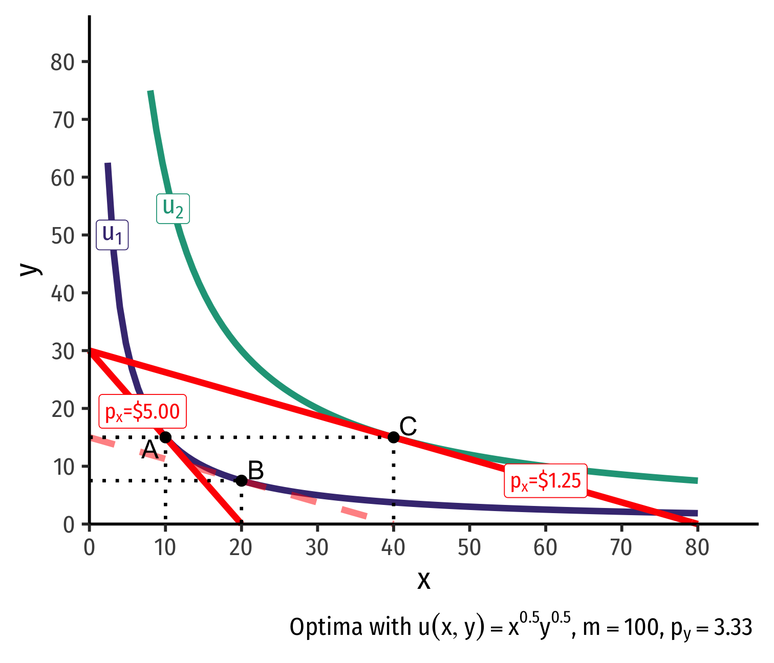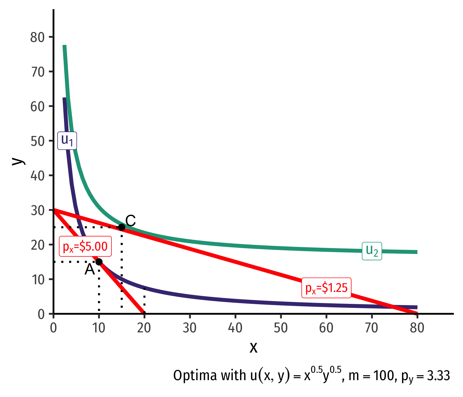 Suppose the price of x falls to $5. Your now consume 20 units of x.