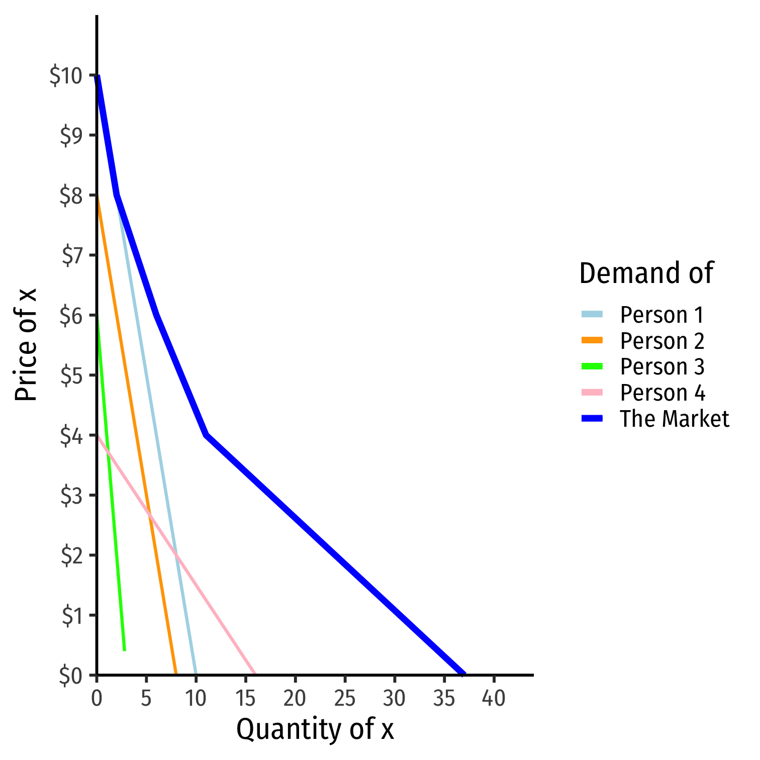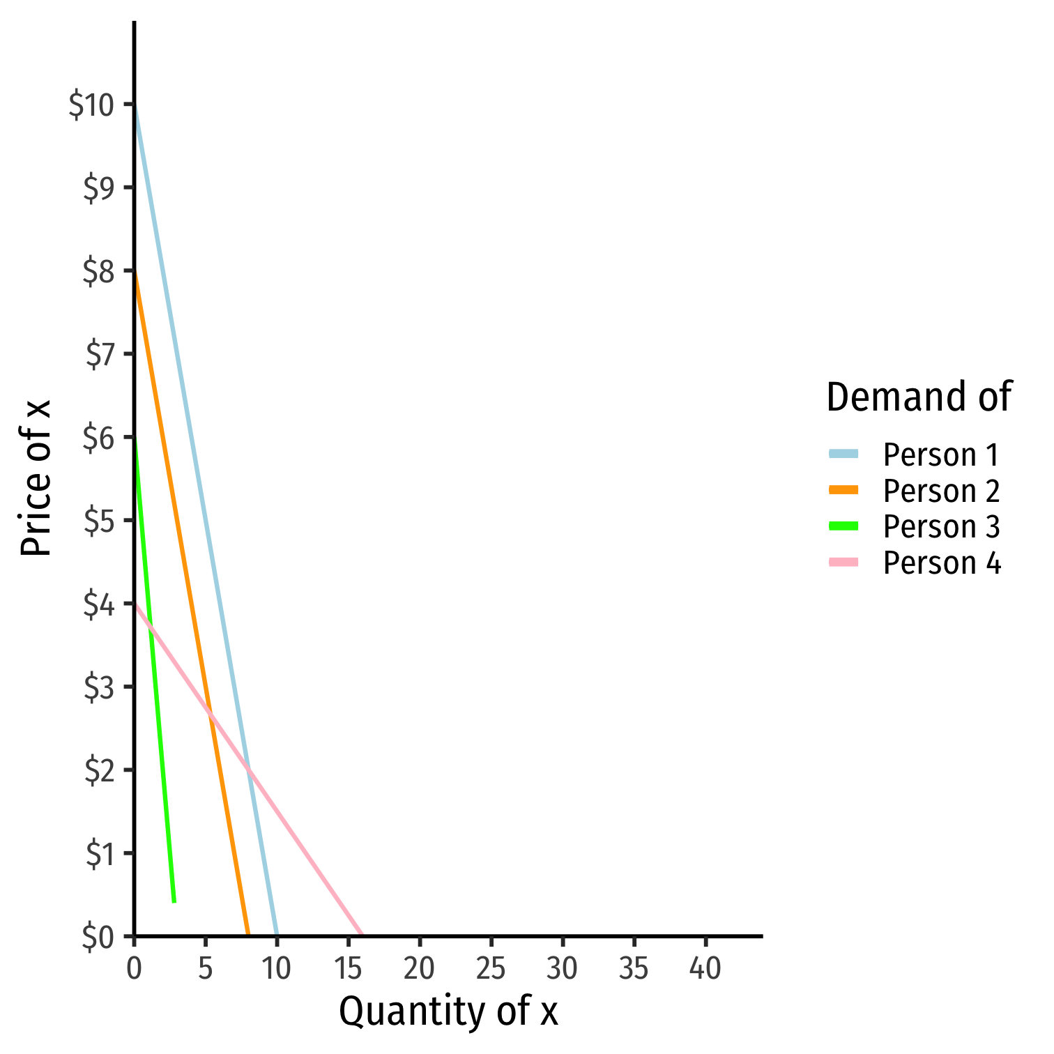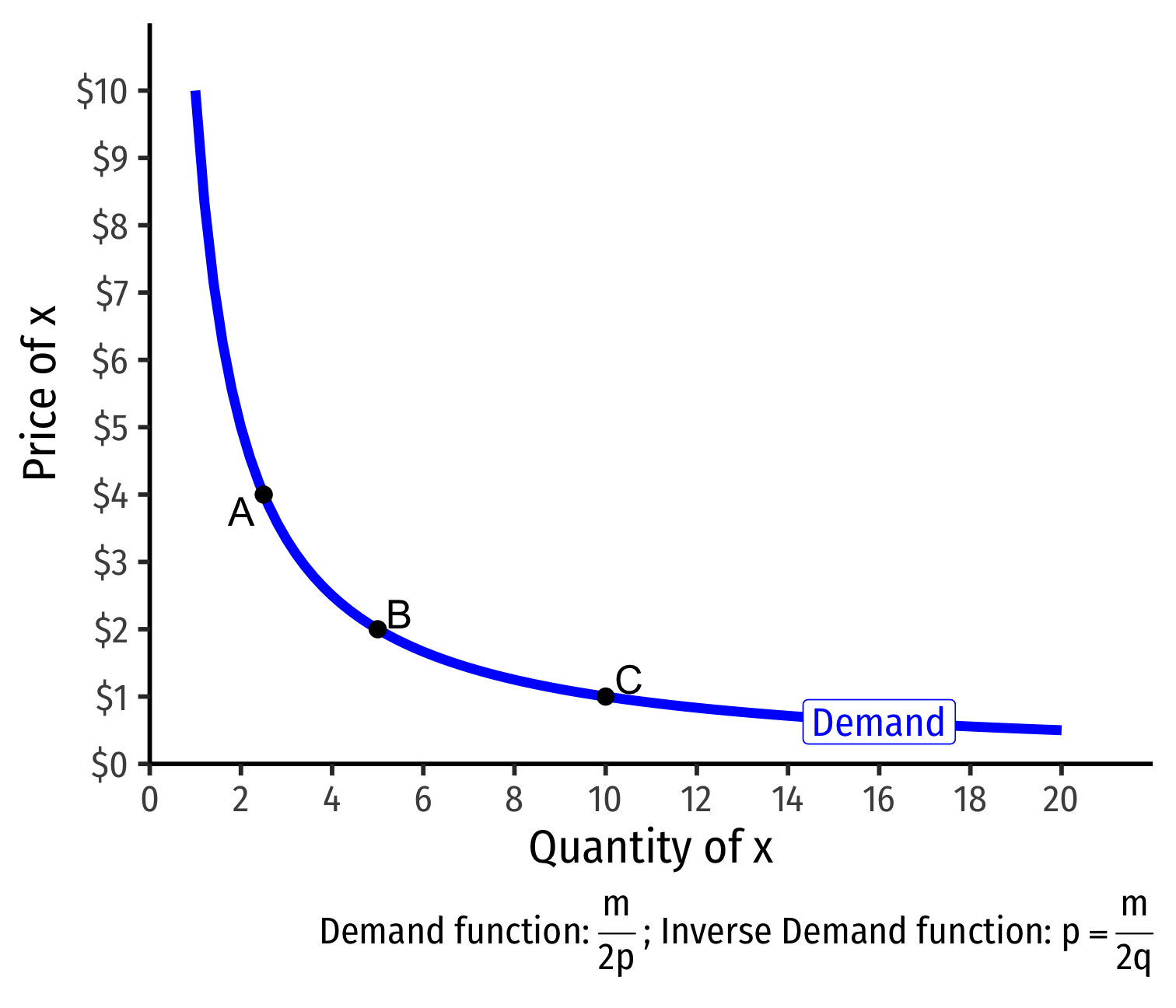 Law of Demand (price effect) ⟹ demand curves always slope downwards