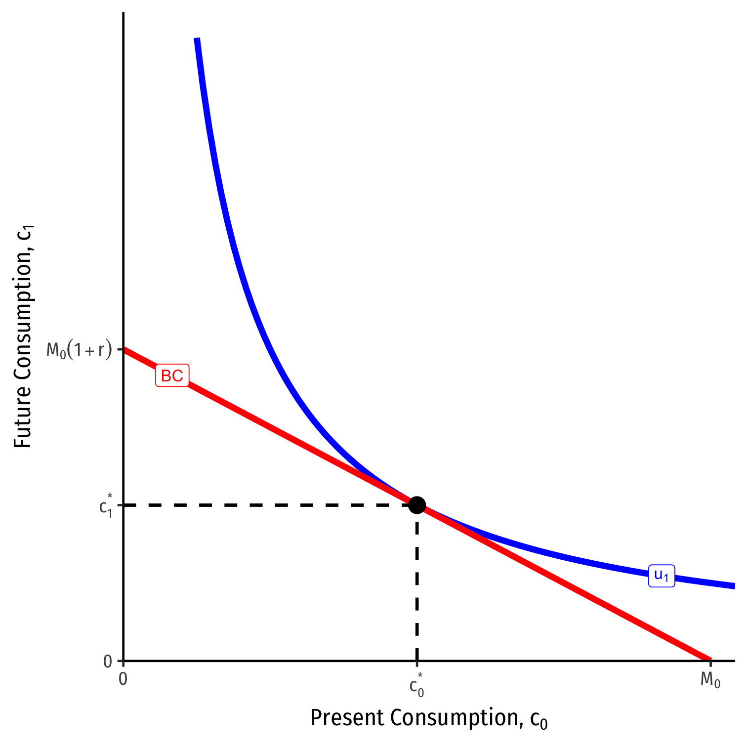 Opportunity cost of consumption today \((c_0)\) is \(1+r\)